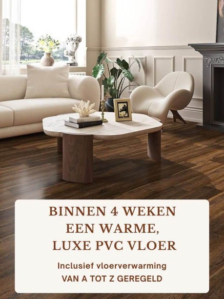Complete PVC vloerafwerking - inclusief ondervloer, plinten, gratis leggen, bezorging én volledige garantie.